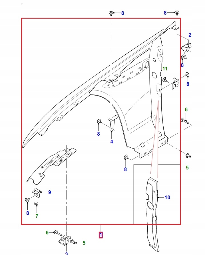 ALETA DELANTERO DER. JAGUAR XF PO LIFCIE/LIFT ($)