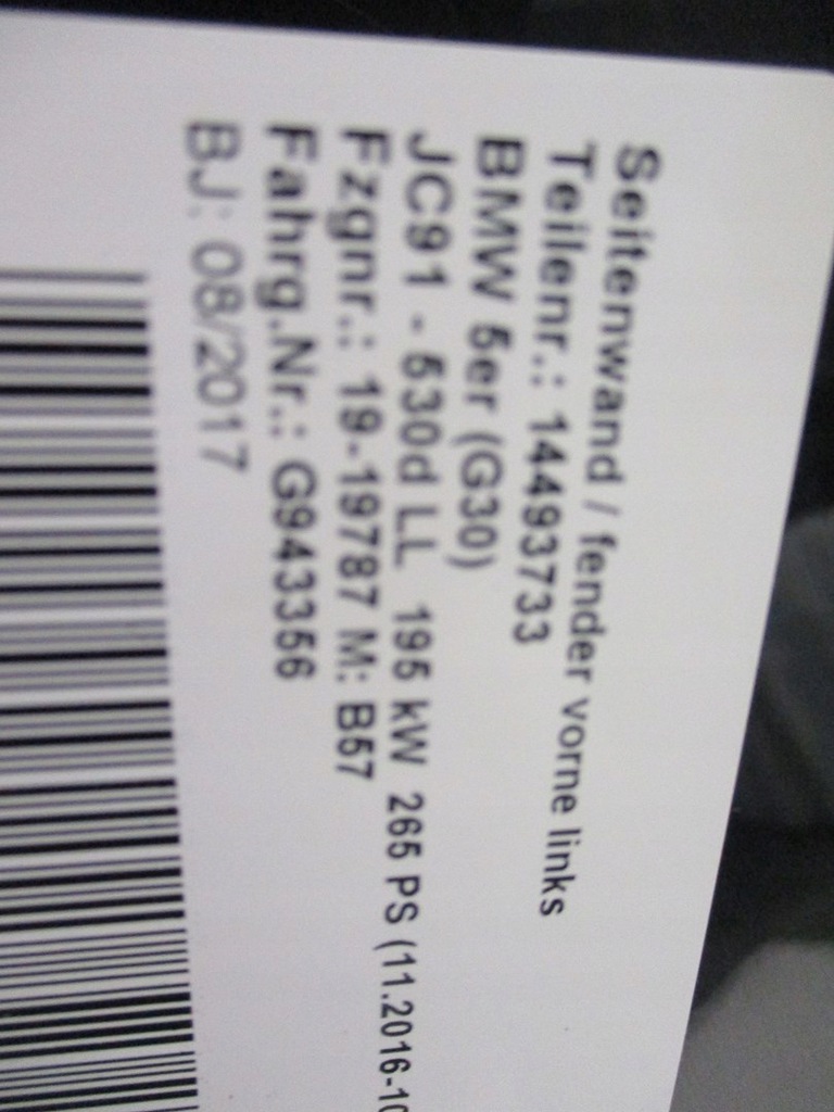 ALETA IZQ. BMW 5 G30 G31 BLACK SAPPHIRE METALIC ($)