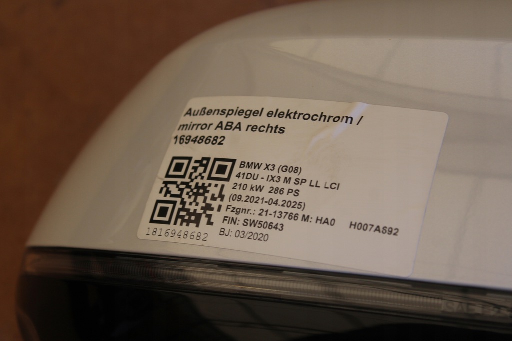 RETROVISOR DER. 9 PIN CAMARA ASYSTEN BMW X3 IX3 G08 ($)