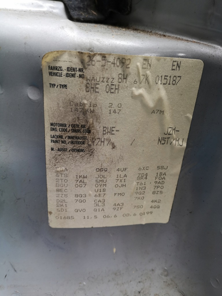 CAPÓ TAPA MOTOR AUDI A4 B7 CABRIO LY7H ($)