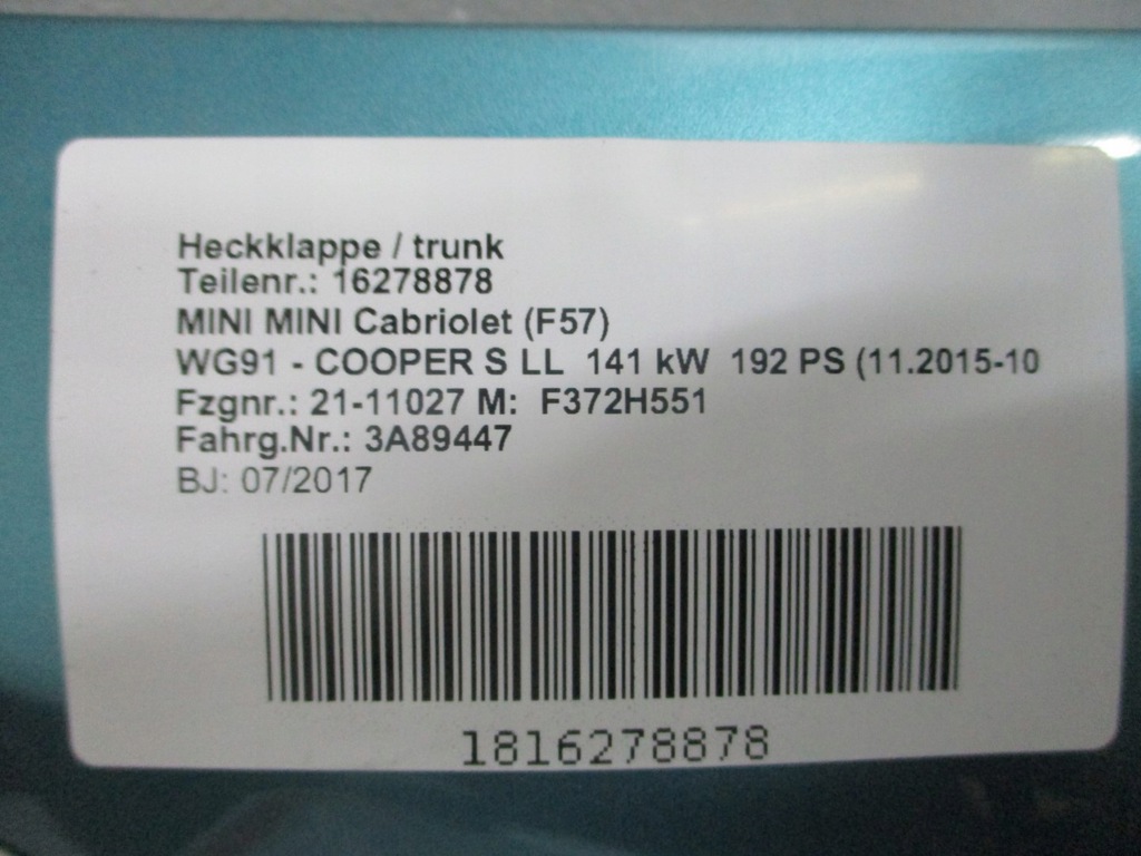 SOLAPAS TRASERO MINI COOPER S F57 17R CAMARA C2E ($)