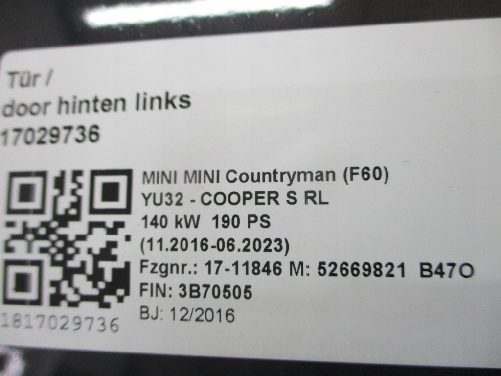 PUERTAS IZQ. DER. TRASERO MINI COUNTRYMAN F60 ($)