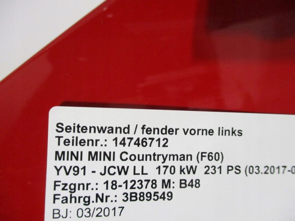ALETA MINI COUNTRYMAN F60 JCW 851 CHILI RED ($)