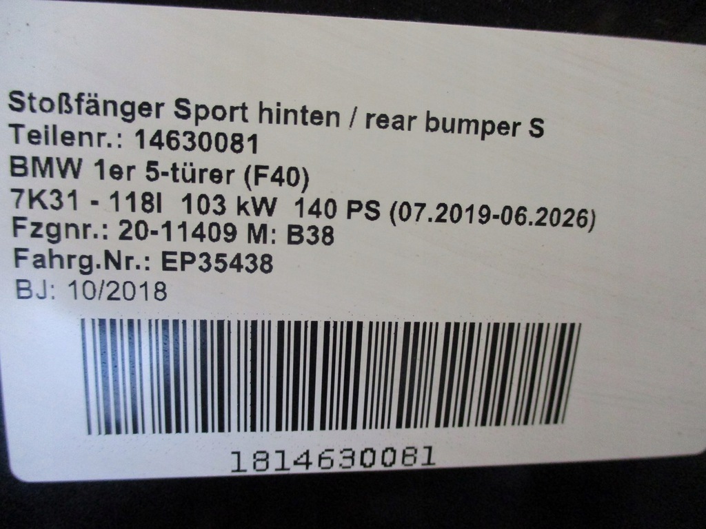 PARACHOQUE PARAGOLPES BMW 1 F40 M LOTE CARBON TRASERO ($)