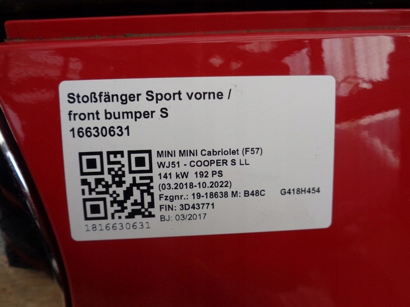 MINI COOPER S F55 F56 F57 PARACHOQUE PARAGOLPES 851 CHILI RED ($)