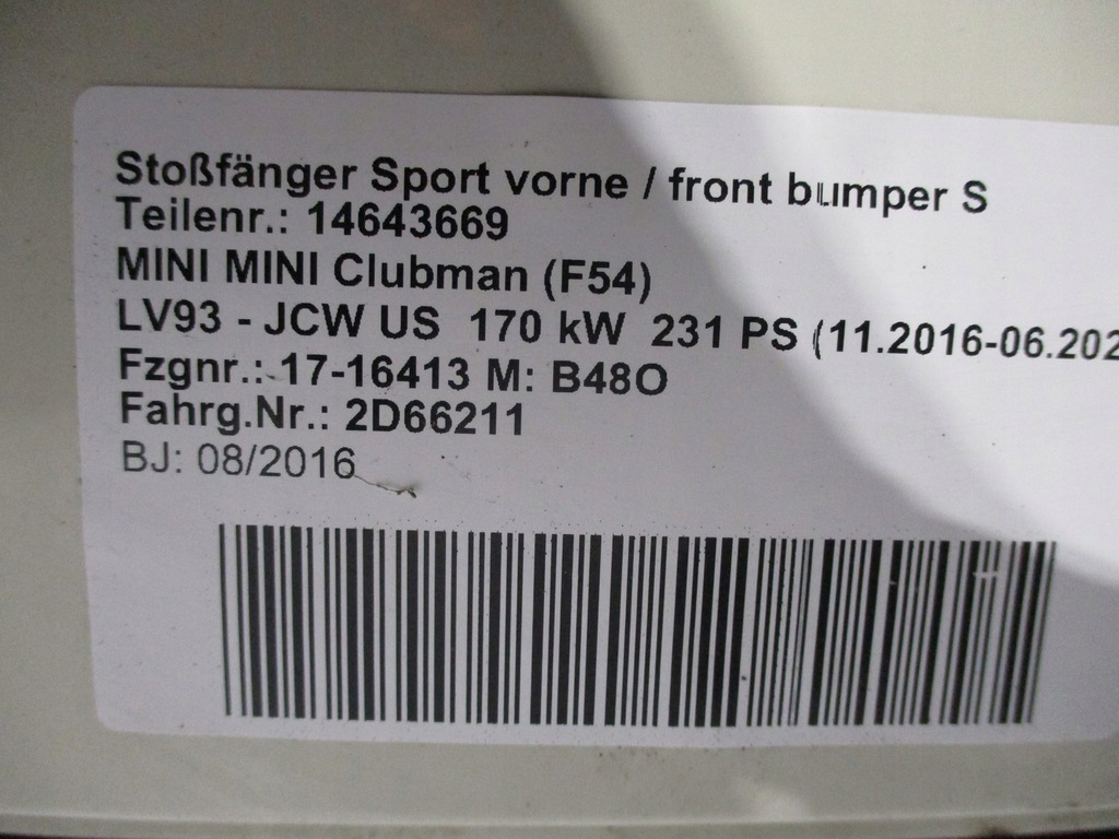 PARACHOQUE PARAGOLPES DELANTERO DELANTERO MINI CLUBMAN F54 850 PEPPER ($)