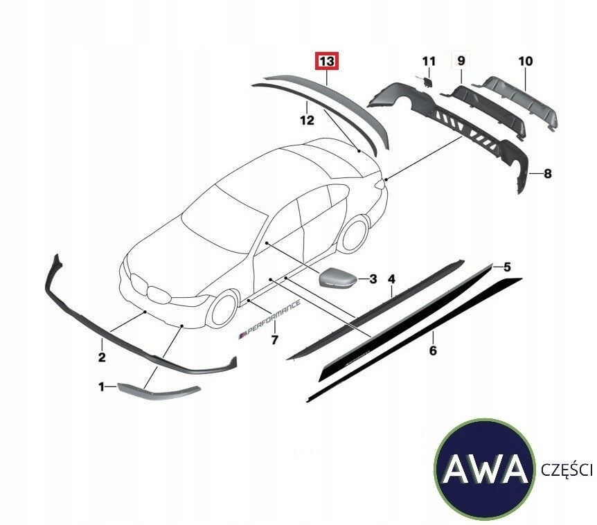 BMW 3 G20 M PERFORMANCE CZARNY SPOJLER TRASERO SOLAPA ($)
