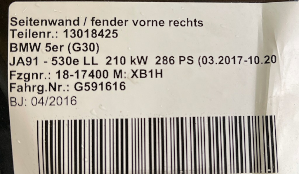 $ ALETA IZQ. DELANTERO BMW 5 G30 G31 ELEKTRYK NUEVO ($)