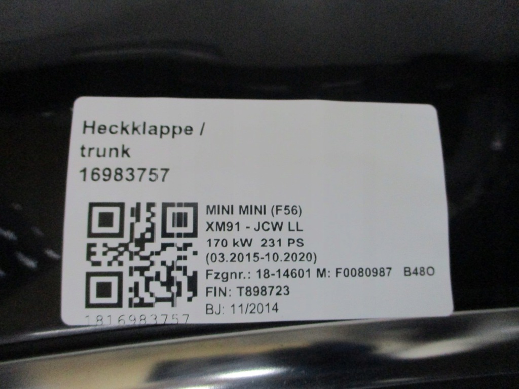 SOLAPAS TRASERO MINI F56 14R JCW A94 ($)