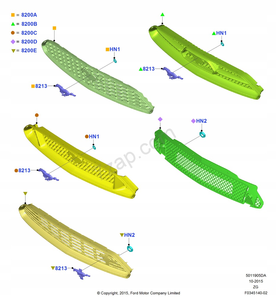 FORD OE 1927989 DELANTERO CALANDRA MUSTANG ($)