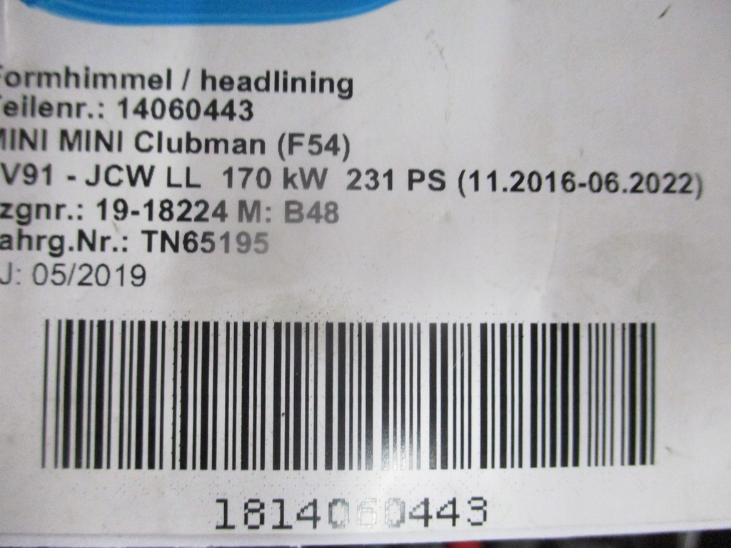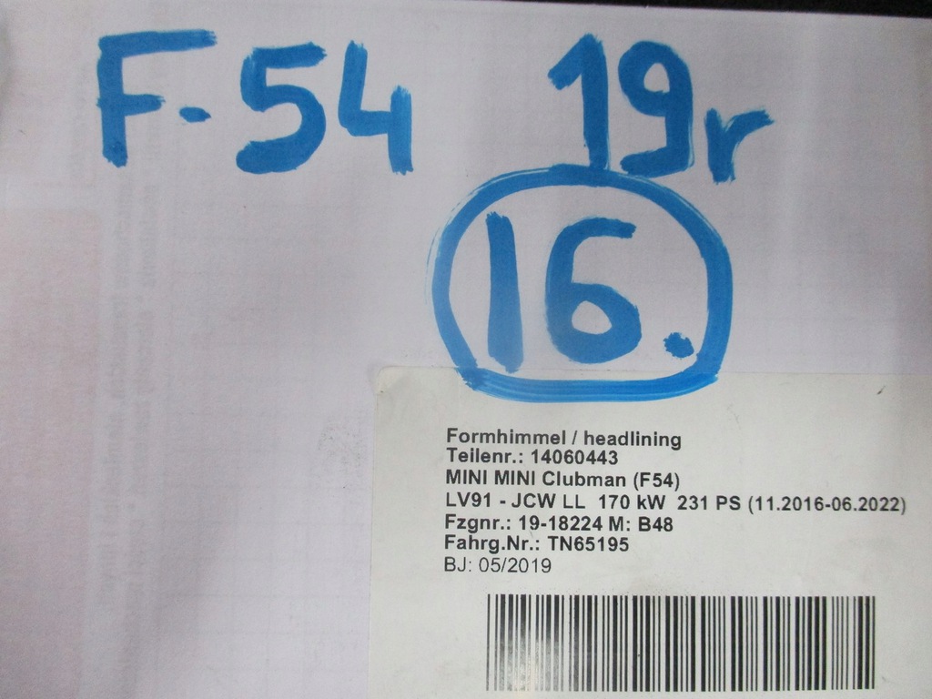 16 REVESTIMIENTO DEL TECHO MINI CLUBMAN F54 19R ($)