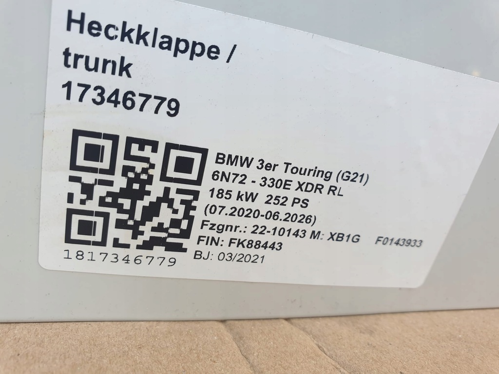 SOLAPAS TRASERO BMW G21 RANCHERA ALPINWEISS A300 ($)