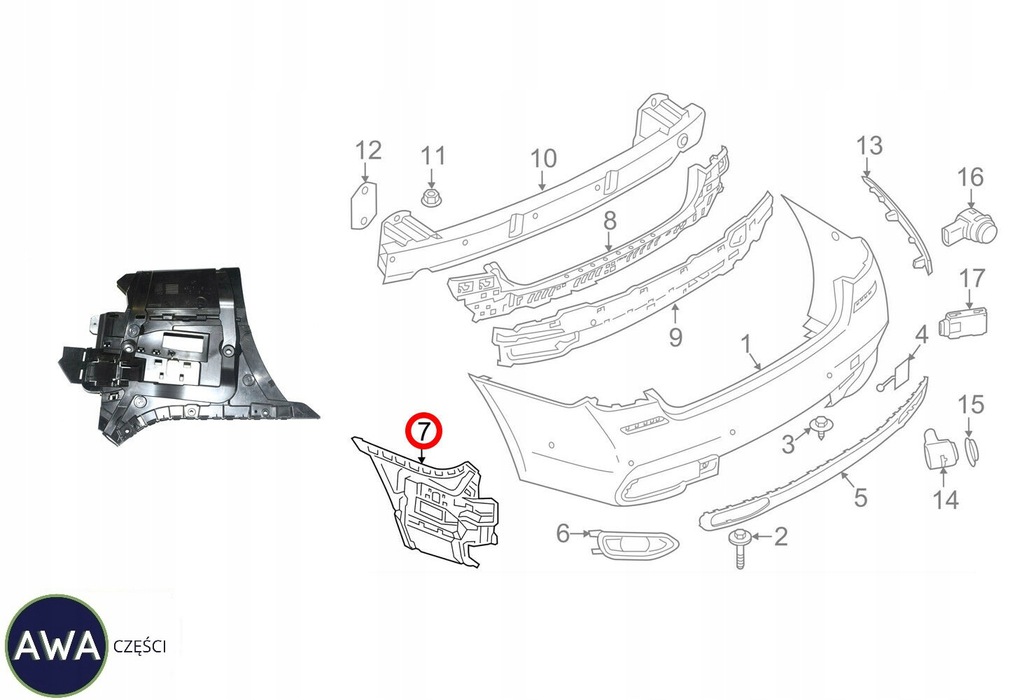 BMW 7 G11 G12 GHIA ZAPATO PARACHOQUE PARAGOLPES TRASERO IZQ. 7357147 ($)