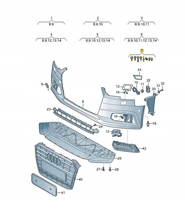 KIT ŚRUB MOCOWAŃ PARACHOQUE PARAGOLPES DELANTERO AUDI A4 B9 S4 ($)