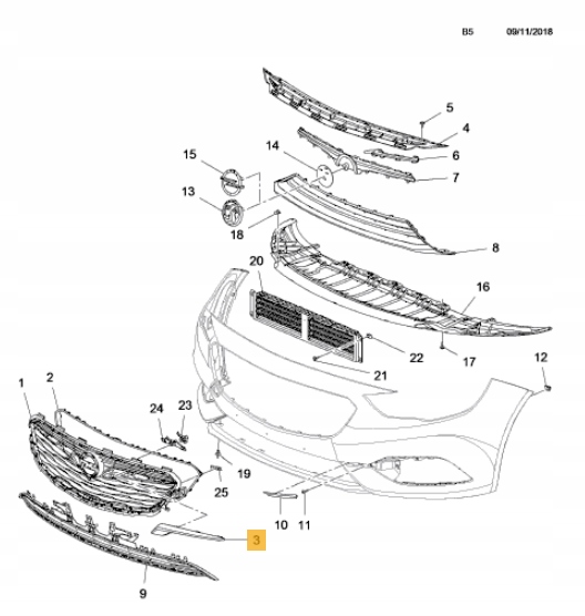 LISTON CALANDRAA NEGRA IZQ. DER. INSIGNIA B 17 ($)