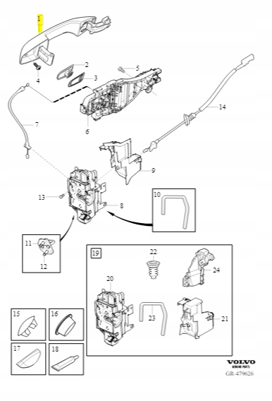 KLAMKA PUERTAS IZQ. DELANTERO / TRASERO CON PODŚWIETLENIEM ($)