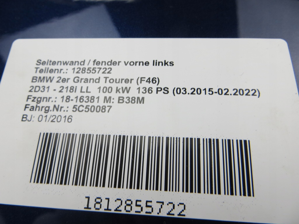 ALETA IZQ. BMW F46 MEDITERRAN BLAU MET C10 ($)