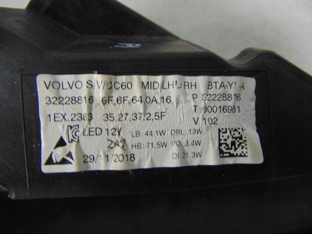 FARO DER.. FULL LED VOLVO S60 V60 32228816 (#)