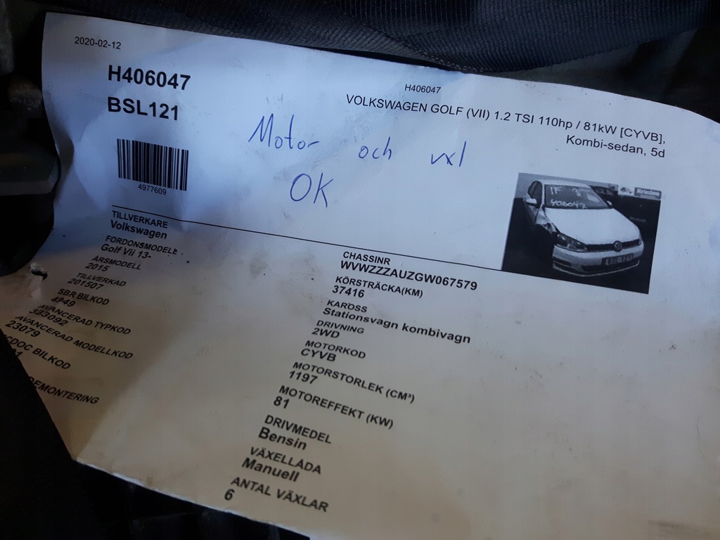 MOTOR CYV 37MIL KM 1.2 TSI SKODA AUDI GOLF (#)