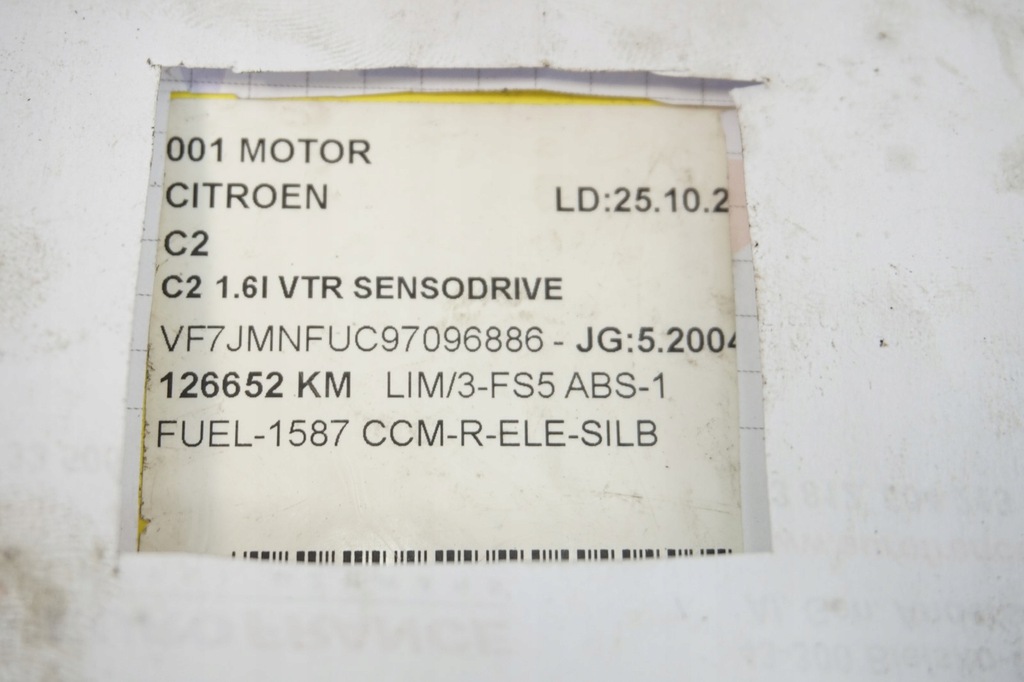 MOTOR NFU 10FX5A CITROEN C2 16 16V 126000KM (#)