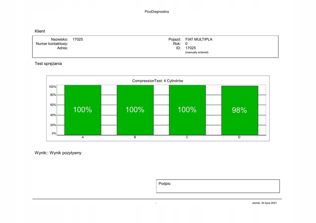 FIAT MULTIPLA 1.9JTD 105KM MOTOR 182B4000 TEST (#)