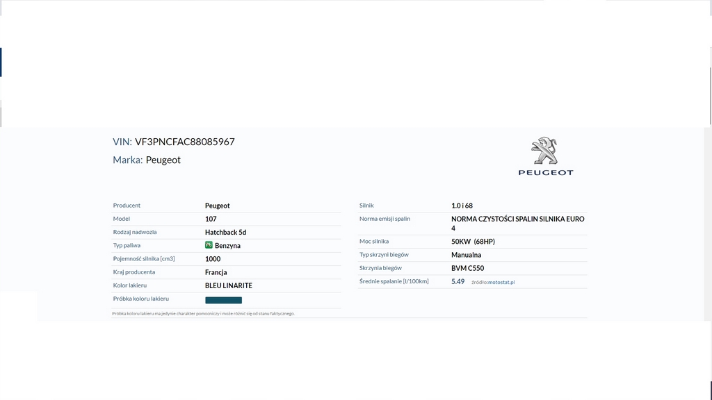 PEUGEOT 107 1.0 5D MARIPOSA MOTORCITO DE PASO A PASO (#)