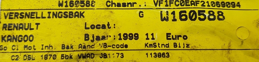 CAJA DE CAMBIOS JB1173 RENAULT KANGOO 1.9 D 114TKM (#)