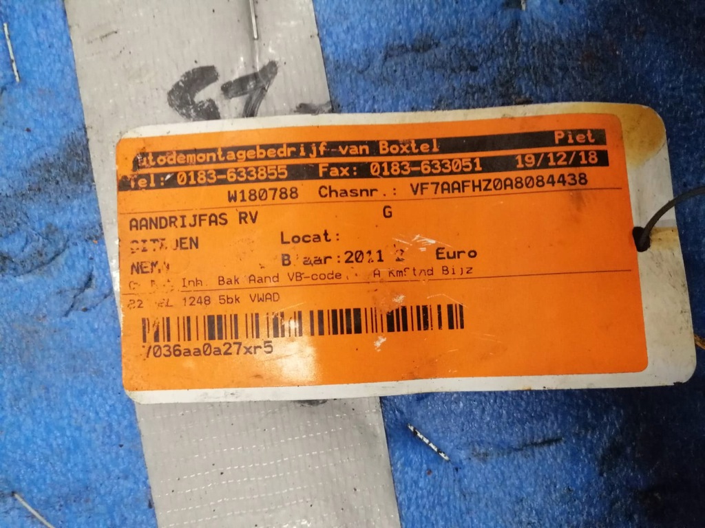 PALIER DER... CITROEN NEMO 1.3 HDI 2011R 10311362 (#)