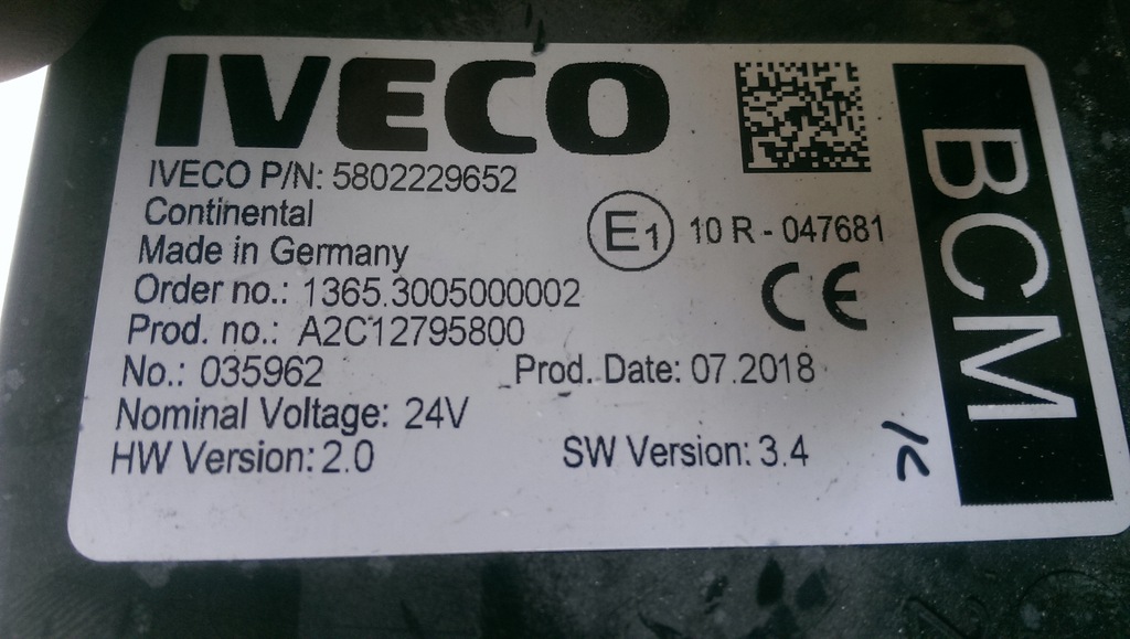 CONTROLADOR BODY MÓDULO CONTROLADOR BCM IVECO 5802229652 (#)