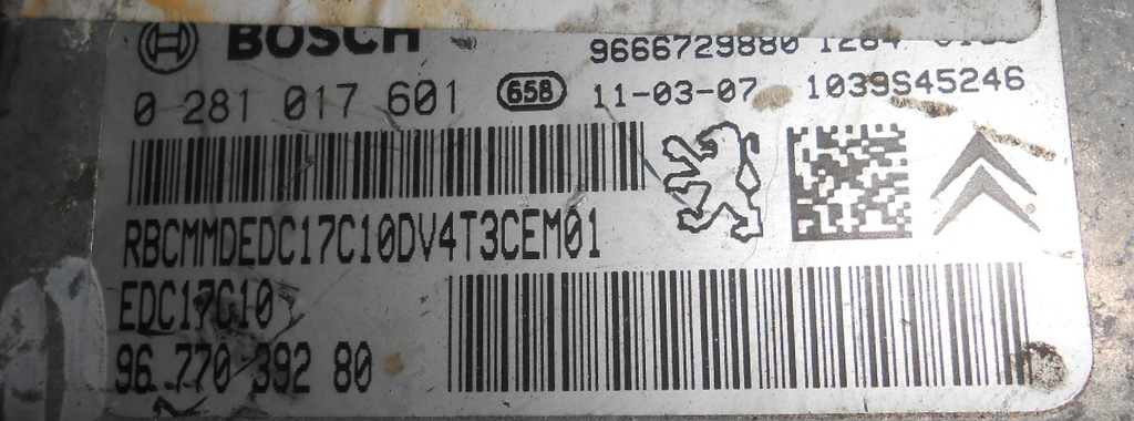PEUGEOT 207 16HDI MÓDULO CONTROLADOR 0281017601 9677039280 (#)