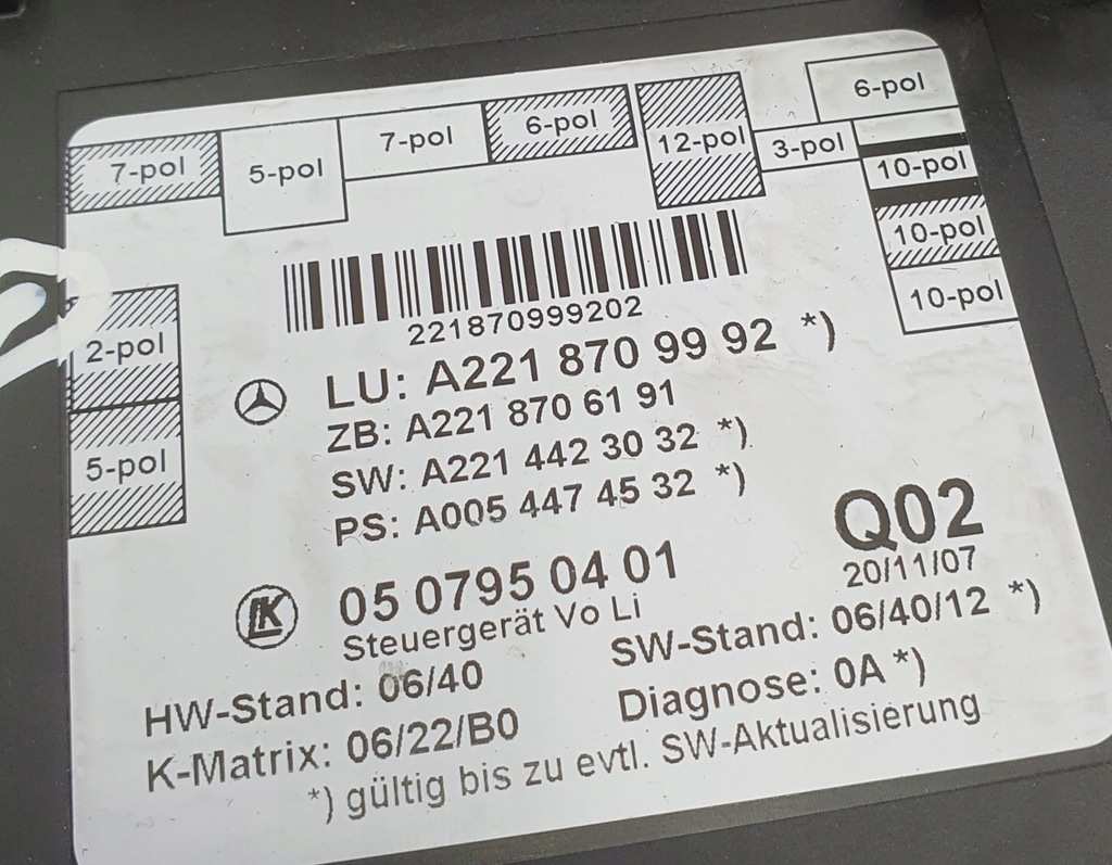 MÓDULO CONTROLADOR PUERTA DELANTERO MERCEDES W221 A2218709992 (#)