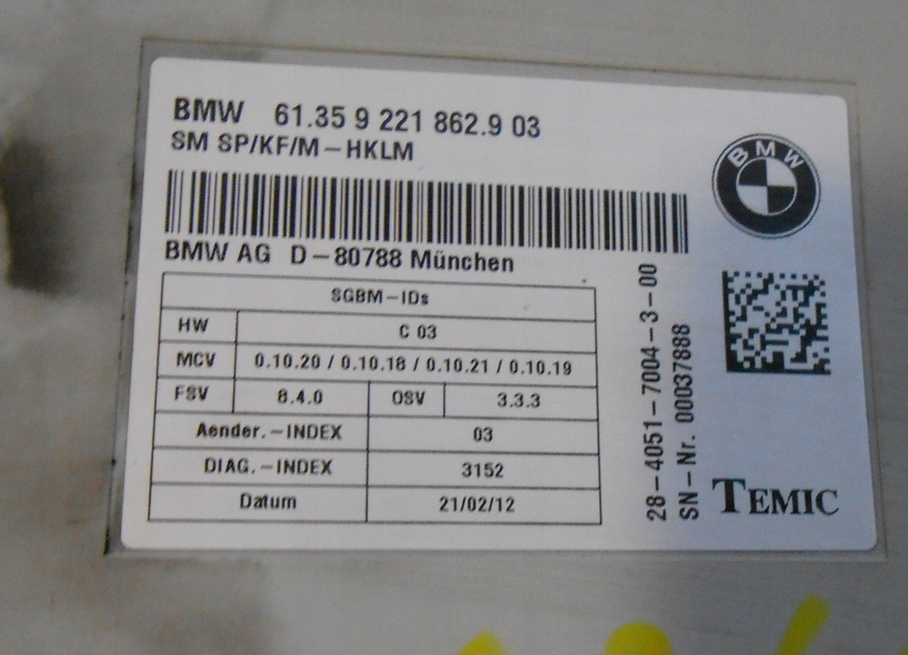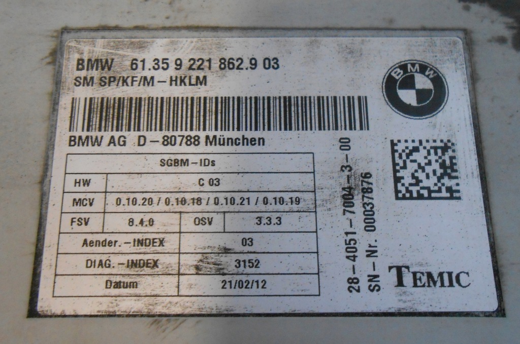 BMW X5 E70 X6 E71 MÓDULO CONTROLADOR ASIENTO 9221862 (#)