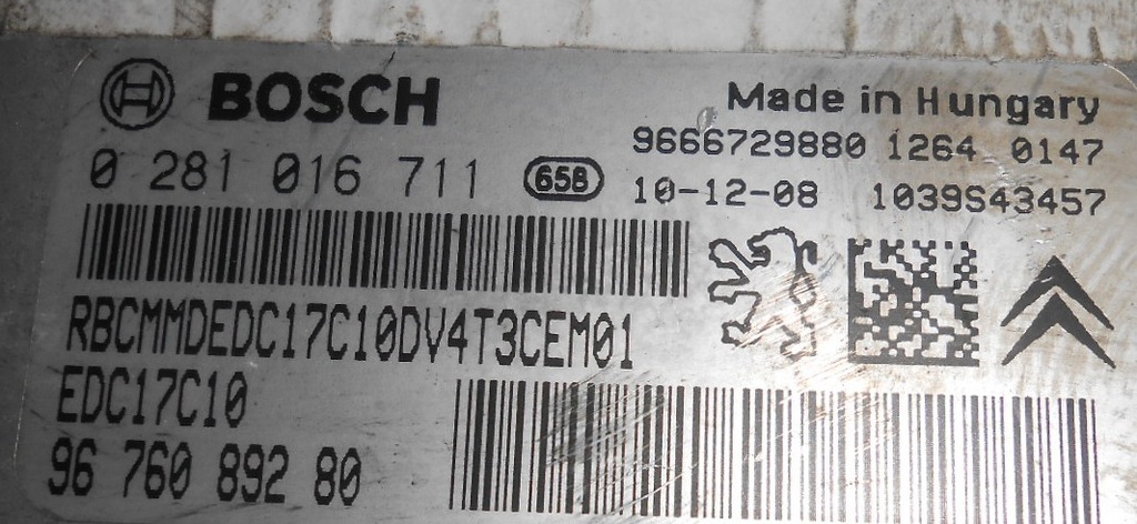 PEUGEOT 206+ 14HDI MÓDULO CONTROLADOR 0281016711 9676089280 (#)