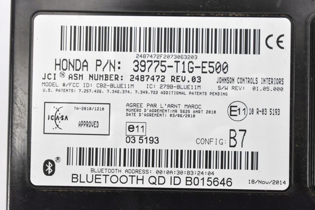 MÓDULO BLUETOOTH 39775-T1G-E500 HONDA CRV IV 12-18 (#)